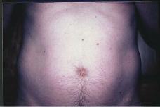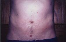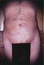 Preoperative view of 48 yr old male pt in 1987 with prominent abdomen